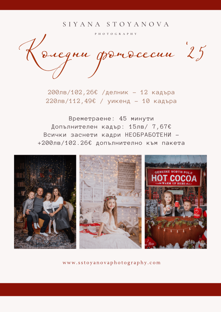○ ако желаете да получите снимките си преди Коледа, запазете час не по-късно от 08.12